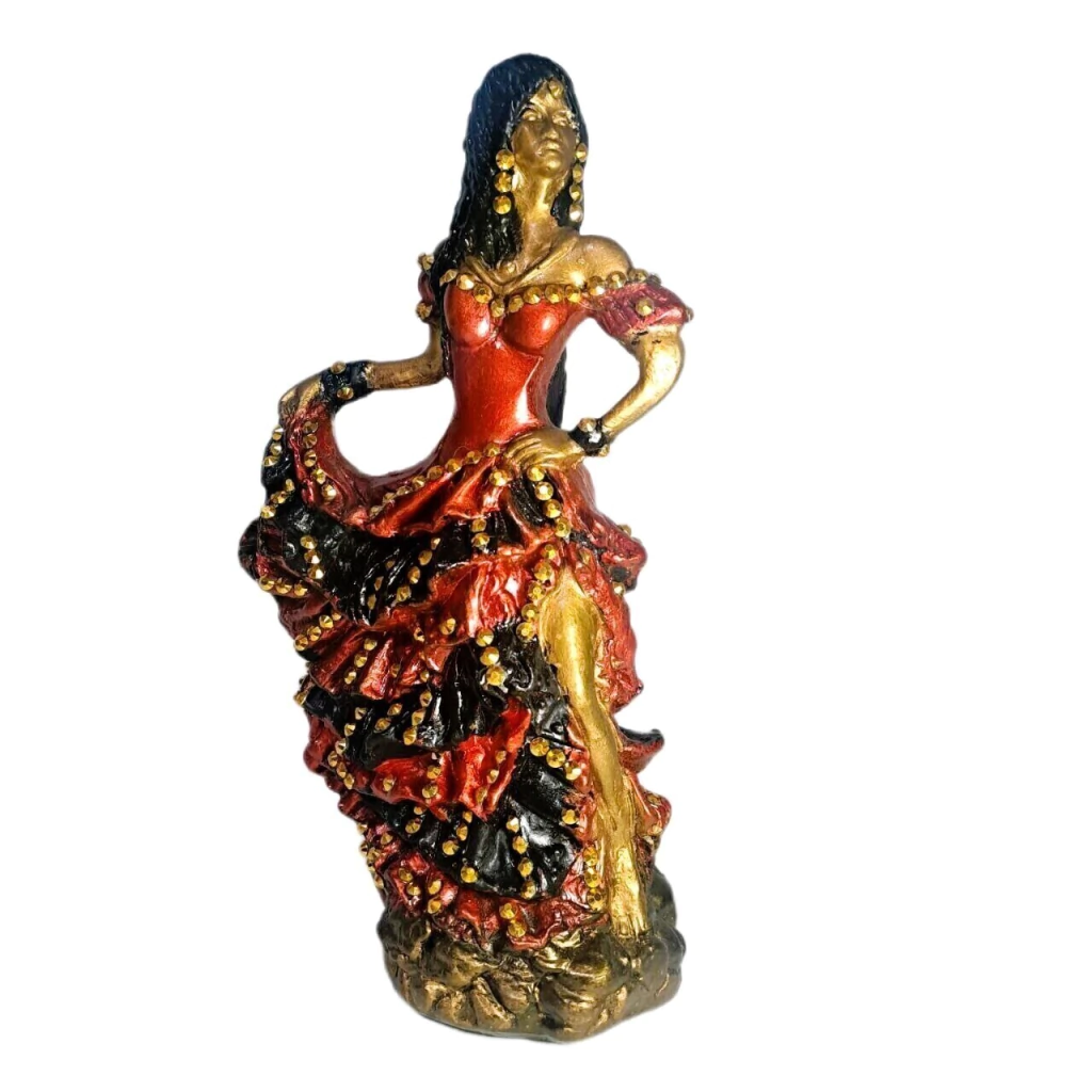 As Pomba Giras ou ciganas são conhecidas por sua sabedoria e empoderamento. Após seu desencarne, elas dedicam-se a ajudar os outros, buscando a caridade e a iluminação, sempre com um toque de amor e compreensão. Esta peça não apenas decora, mas também conecta você com essa rica espiritualidade. Descubra a força e a espiritualidade das Pomba Giras com esta escultura artesanal de 25cm, feita em gesso cerâmico e nas vibrantes cores vermelho e preto. As Pomba Giras são entidades espirituais que simbolizam liberdade, paixão e a busca pela paz interior, trazendo histórias de vidas marcantes e grandes amores.