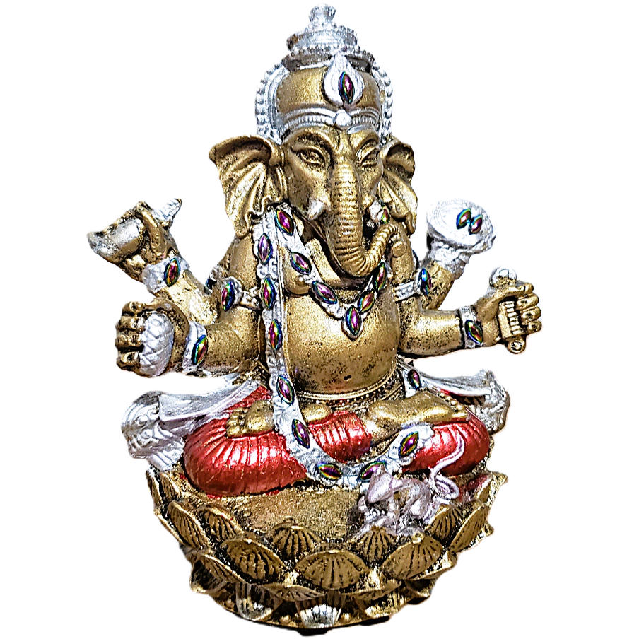 Adicione um toque de elegância e significado cultural ao seu ambiente com o Ganesha na Flor de Lótus da Maraterapia, Uma peça decorativa com brilho, qualidade e excelente acabamento,